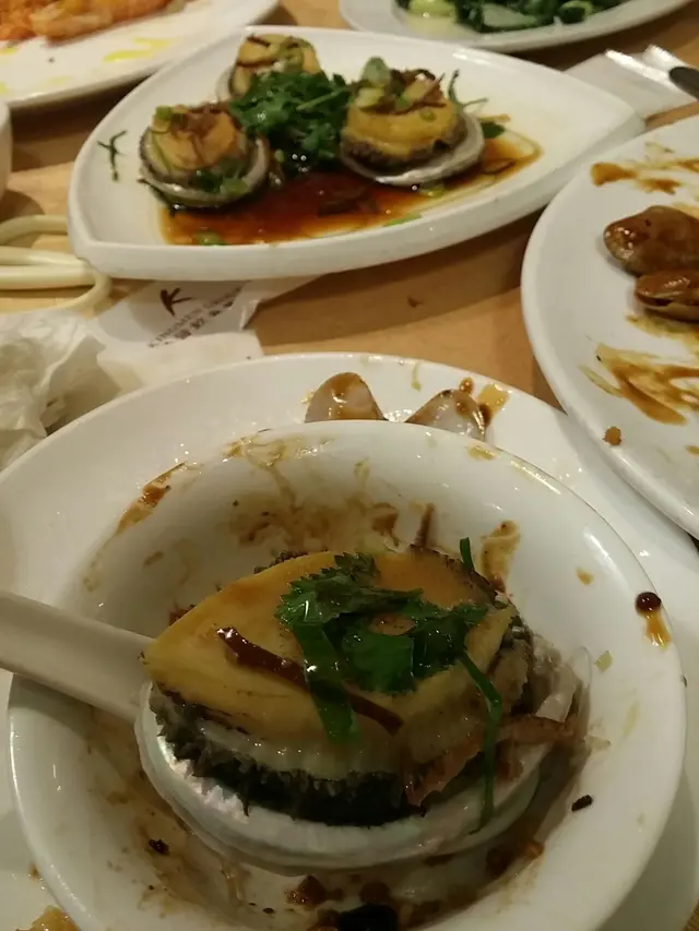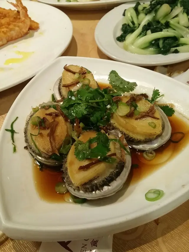 先上巨型椒鹽瀨尿蝦, 師傅做法無甚麼特別,但的確夠傳統惹美 ,有前手臂咁大隻瀨尿蝦確實鮮味, 南非鮑魚比一隻八達通更大隻 ,欣賞店家用上陳皮, 香味貫徹, 去走鮑魚的苦澀味, 扇貝買回來的很大隻, 只是不太夠 蒜蓉, 買了一斤鮮蝦級師傅做芝士炸蝦, 廚師弄得夠香口 二三十隻蝦連榖掃清光.