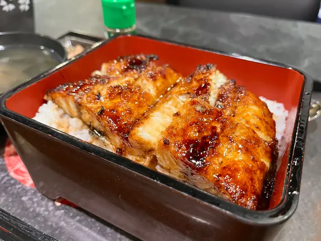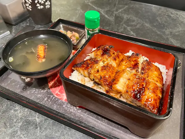 鰻魚飯連湯帶菜一盤端上來,還很貼心地配上了七味粉,精緻的一盒,店員打開盒蓋的時候真是讓人充滿期待!兩大塊超厚身鰻魚😍真的是我吃過這麼多次鰻魚飯裡最厚肉的了🤣肉質非常Q彈,魚皮燒到焦香,沒有腥氣,醬汁也很有滋味,配飯相當美好,唯醬汁感覺偏少完全不夠撈飯🫣整體味道也感覺淡了一些,不知是因為旺角店比較新有待進步?還是本就如此所以配了七味粉😅加七味粉之後味道果然有變豐富,不過跟我預想中的鰻魚飯還是稍有距離🫢