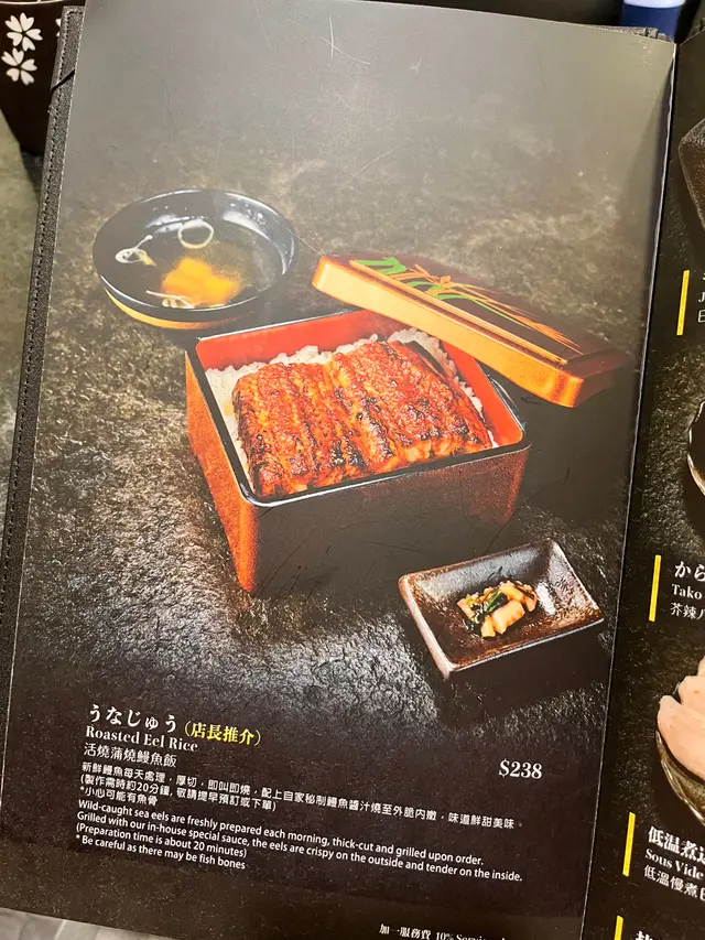 湯就有點特別啦,端上來我還疑惑了一下上面漂了個什麼,仔細一看是鰻魚骨😂加入魚骨熬的湯的確喝起來感覺更鮮美,配菜也很新鮮,口感不錯帶少少芥辣,十分解膩開胃😋
