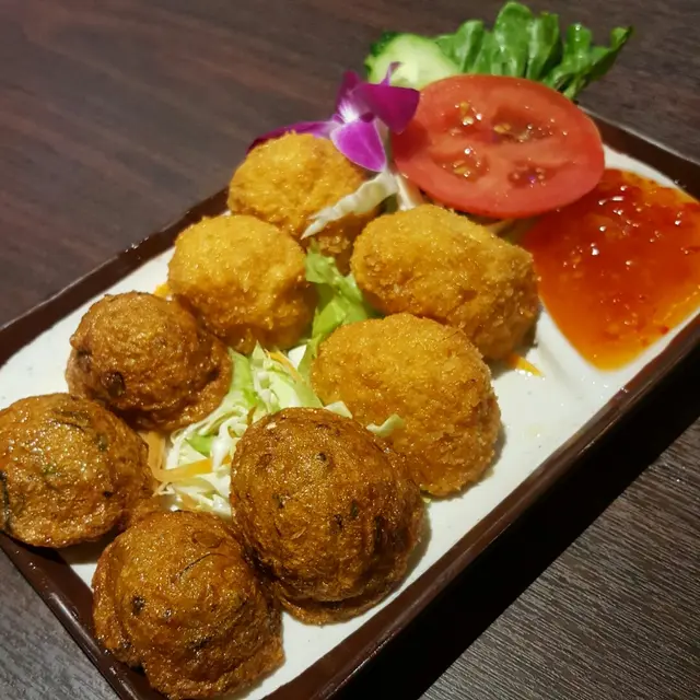 可以揀2款小食,有蝦餅、魚餅、香葉包雞同春卷選擇,k揀左蝦餅同魚餅!新鮮炸起熱辣辣咁上枱,兩款雖然切半咁上,但都幾大粒。蝦餅蝦肉好彈牙,吉列外層脆卜卜😍;魚餅裏面有香葉,食落香料味幾出。