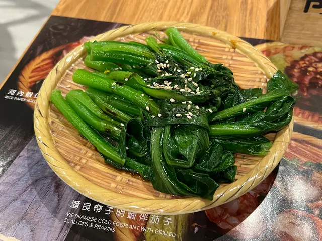 健康之選我就揀咗碟香甜菜心苗,面頭舖滿芝麻,配有微甜嘅豉油🥬