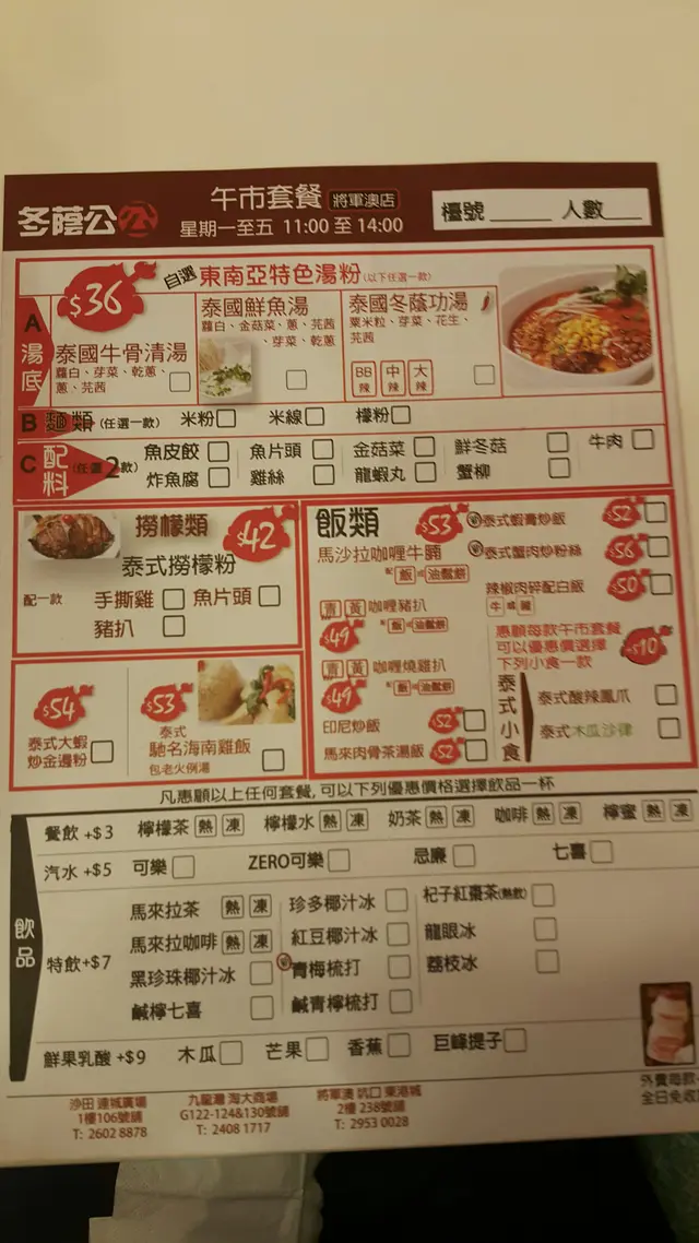 大大碗!會再食! laickasyieLevel 22015-01-03799 views Follow 嚟到搵lunch食,見到呢到又米線,對面舖又米線。其實在門口看餐牌時一直想食對面嫁,因為好想食酸辣,但男朋友話不如試下就好吧。我地果時係lunch time.. menu: 1 其實唔知呢到嘅冬陰公咩味,所以我地決定保障d,叫一個冬陰公湯(小辣),一個鮮魚湯~ 1 丸呀,炸魚腐果d都有3粒,都算okay!嚟到先試好緊張唔知咩味嘅冬陰公湯,好味呀!有啲喜出望外,真係掂,下次可以試中辣。而鮮魚湯都好香甜,正。其實碗野真係勁大碗,男仔食都有機會食唔哂!最後一題,佢比對面米線店優勢之處就係……佢加野飲只需$3喳! The above review is the personal opinion of a user which does not represent OpenRice's point of view.LikeShare大大碗!會再食! 冬蔭公公 https://s.openrice.com/QrKT0kDma00Report Post Ratings4Taste4Decor2Service3Hygiene3ValueDate of Visit2014-12-30Dining MethodDine InSpending Per Head$39 (Lunch)