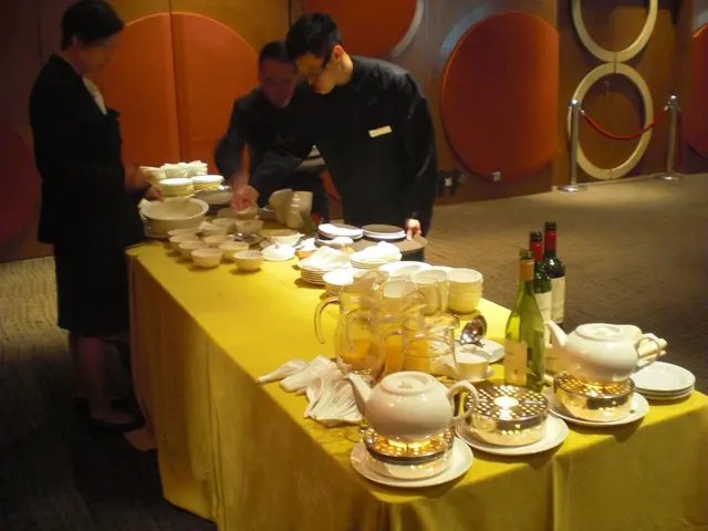 晌如此高級嘅宴會廳進餐,當然唔使大家「起筷」,規格跟晌酒店內嘅中菜廳擺酒無異,每道菜都由專人分好再送上,所以,侍應們都要密密做。