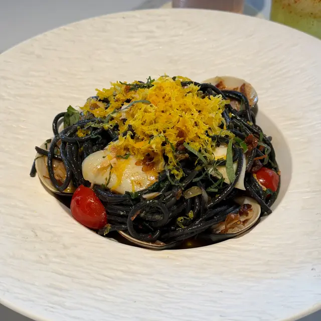 👍🏻墨汁魷魚蜆肉意粉 $138
