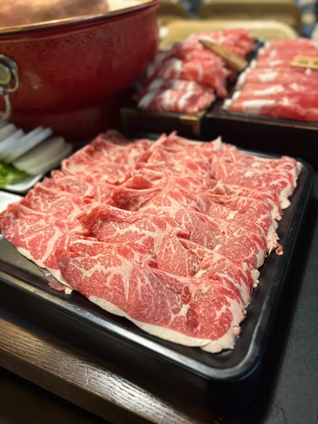 🥩【挑骨雪花牛】– 脂肪分佈靚到好似藝術品,涮5秒,入口即溶,肉汁直噴喉嚨!