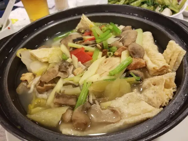 七點未夠,大榮華已經差不多坐滿了人,我們急不及待即刻點了它著名的五味雞,再加上一個瓦撐焗石斑,黑胡椒豬肚煲及通菜炒鮮魷。五味雞,一如以往,不負所望,石斑嫰滑,用瓦撐焗,能夠保住它的鮮味; 通菜炒鮮油,魷魚新鮮,胡椒豬肚煲,簡直要連胡椒湯都飲埋。