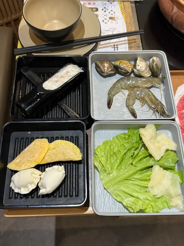 餐廳有多走台灣直送食材,例如水蓮菜、阿在伯高麗菜豬肉水餃、韭菜豬肉水餃、蛋餃、手工蝦滑、魚肚,還有自助區多款丸餃類食材,非常豐富😍