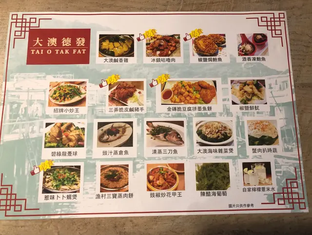 大澳德發-水上人家菜 mygoodfoodLevel 32021-09-2951 瀏覽 關注 今日公老出咗去銅鑼灣做嘢,佢係附近見到間大澳德發餐廳,今晚我哋就去試吓。😋三弄脆皮豬手,大大隻豬手,皮卜卜脆又香口肉質嫩,唔會好鹹好乾,加少少芥末醬有令一種美味。$188😋生啫唐生菜,熱辣辣,生菜爽好入味,配上乾蝦,肉碎加入少許紅椒,又惹味。$68😋椒鹽九肚魚,九肚魚炸得好脆好香,椒鹽唔會影響魚肉質鮮味,魚新鮮唔會覺得油膩。$88😋金沙鮮魷,外脆內軟鮮魷炸得好彈牙唔韌好爽滑,加入蛋黃炒更加香唔會太鹹,蛋黃調教得好。$98😋鹹檸檬七喜,簡單一杯鹹檸七,檸檬唔會太酸。$25員工有禮貌熱情,環境舒服,價錢合理,下次會再來。以上食評乃用戶個人意見 , 並不代表OpenRice之觀點。讚好分享大澳德發-水上人家菜 大澳德發 https://s.openrice.com/QrKT07y6VW0檢舉 張貼 評分5味道5環境5服務5衛生5抵食用餐途徑Dine In