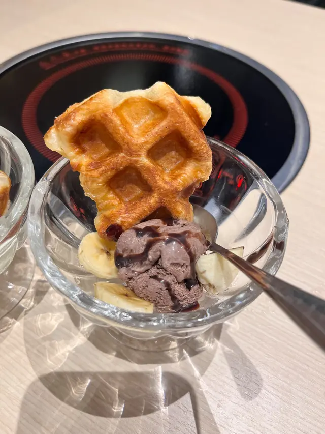 最後再食埋甜品,除左有唔同品牌雪糕雪條,仲有即叫即製既香蕉朱古力牛角窩夫🧇,窩夫熱辣辣,牛油香味重,可以媲美甜品店出品,唔錯