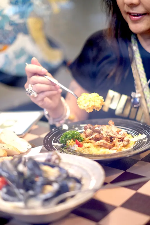 大角咀|再訪人氣高企cafe aa100027Level 42023-05-13135 views Follow 餐廳放有很多特色擺設,感覺好cozy ,之前來就是為了飲他家的特濃朱古力奶🤎,今次再訪必試特濃宇治抹茶白朱古力奶💚 💚特濃宇治抹茶白朱古力奶,同樣玻璃樽盛著,冰涼的,抹茶味濃,入口順滑 特濃宇治抹茶白朱古力奶特濃宇治抹茶白朱古力奶特濃宇治抹茶白朱古力奶 🦀原隻軟殼蟹龍蝦汁蟹肉海鮮意大利飯,軟殼蟹好大隻,酥脆多汁,意大利飯配龍蝦汁,既濃稠又鮮味十足原隻軟殼蟹龍蝦汁蟹肉海鮮意大利飯原隻軟殼蟹龍蝦汁蟹肉海鮮意大利飯原隻軟殼蟹龍蝦汁蟹肉海鮮意大利飯 🥘白酒藍青口配法包,味道清新,醬汁creamy微帶酒香,配上洋蔥粒、香草等,青口食落份外鮮甜白酒藍青口配法包白酒藍青口配法包 🫖山楂玫瑰烏龍茶 除了朱古力,也有原壺上的茶,清新又解膩山楂玫瑰烏龍茶 The above review is the personal opinion of a user which does not represent OpenRice's point of view.LikeShare大角咀|再訪人氣高企cafe 二世祖 https://s.openrice.com/QrKT0q8n900Report Post Ratings4Taste4Decor4Service5Hygiene4ValueRecommended Dishes特濃宇治抹茶白朱古力奶特濃宇治抹茶白朱古力奶特濃宇治抹茶白朱古力奶原隻軟殼蟹龍蝦汁蟹肉海鮮意大利飯原隻軟殼蟹龍蝦汁蟹肉海鮮意大利飯Dining MethodDine In