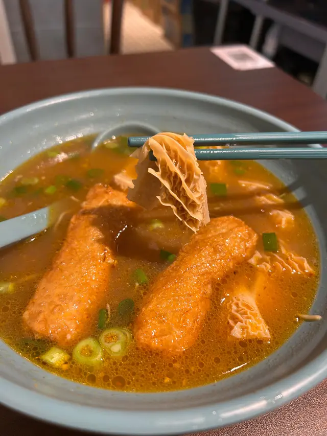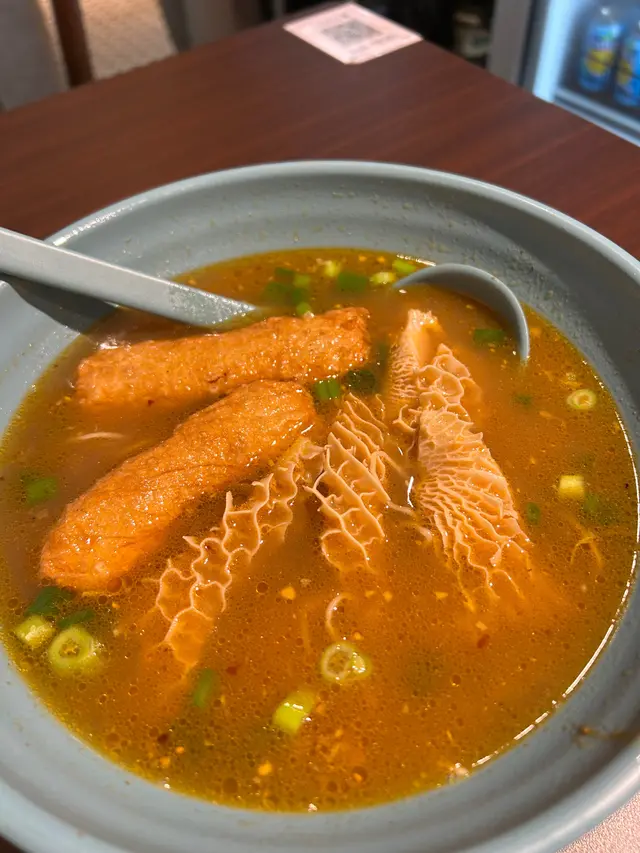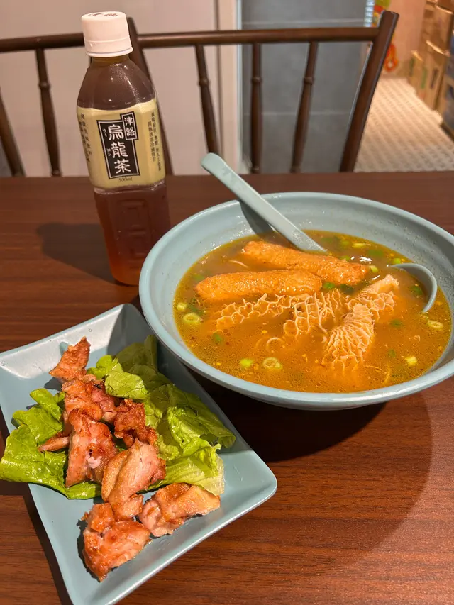 金錢肚洗得非常乾淨,而且煮到嘅軟硬度亦都啱啱好唔會好韌,而且保持到咬口,另外因為小編揀咗沙嗲汁,所以金錢肚就好瓜汁係滿滿嘅沙嗲味!!!以兩餸車仔麵嚟㗎份量都唔少,一路夾一路夾就發現都有六七件,性價比極高~墨魚春卷就係一個比較健康嘅選擇,因為就係滿滿嘅墨魚,有輕輕調味少少食落彈牙惹味🙂‍↕️