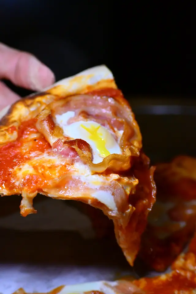▶︎ pizza鋪滿煙肉 鵪鶉蛋 番茄base 整體鹹香濃郁 食完仲想食!