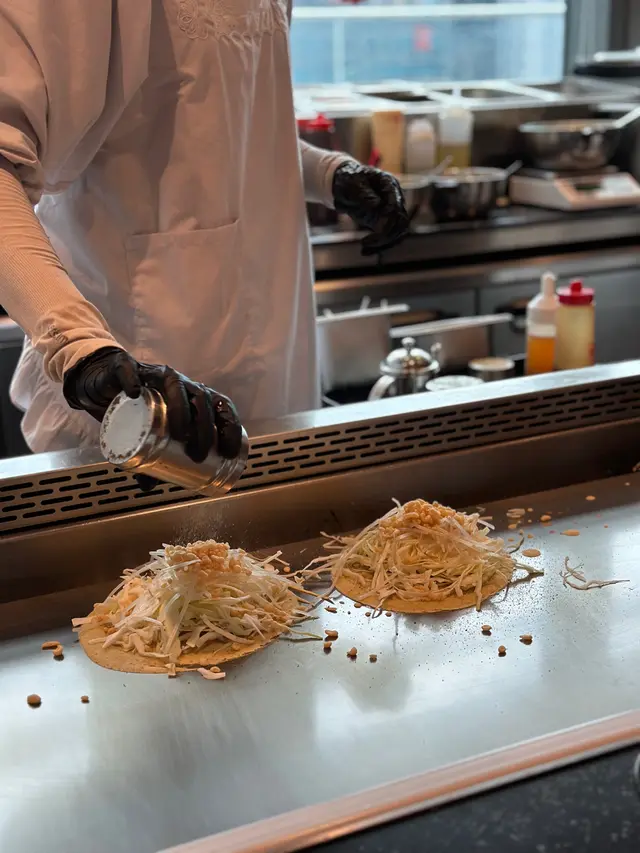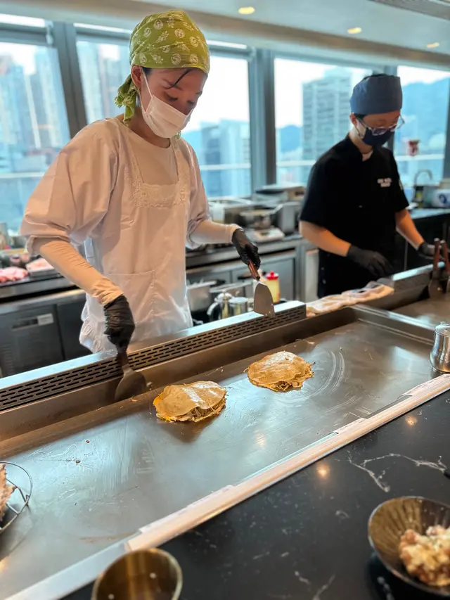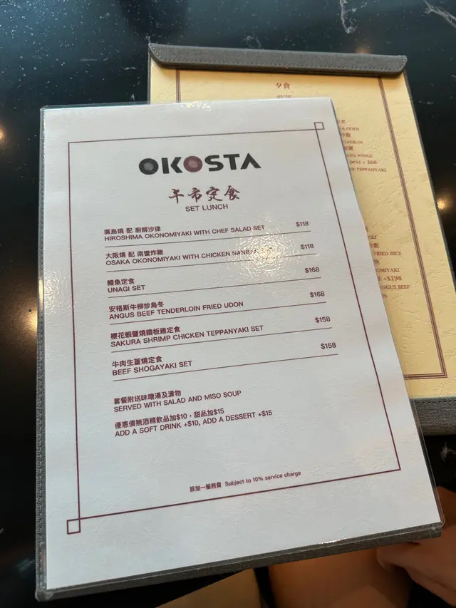 見到OKOSTA主打大阪燒,入到去即刻俾鐵板「滋滋」聲同埋醬油香𠱁到流口水!日籍師傅頭綁「鉢卷」,手執兩把鐵鏟喺開放廚房玩雜技,估唔到依度又有一場show 可以睇。