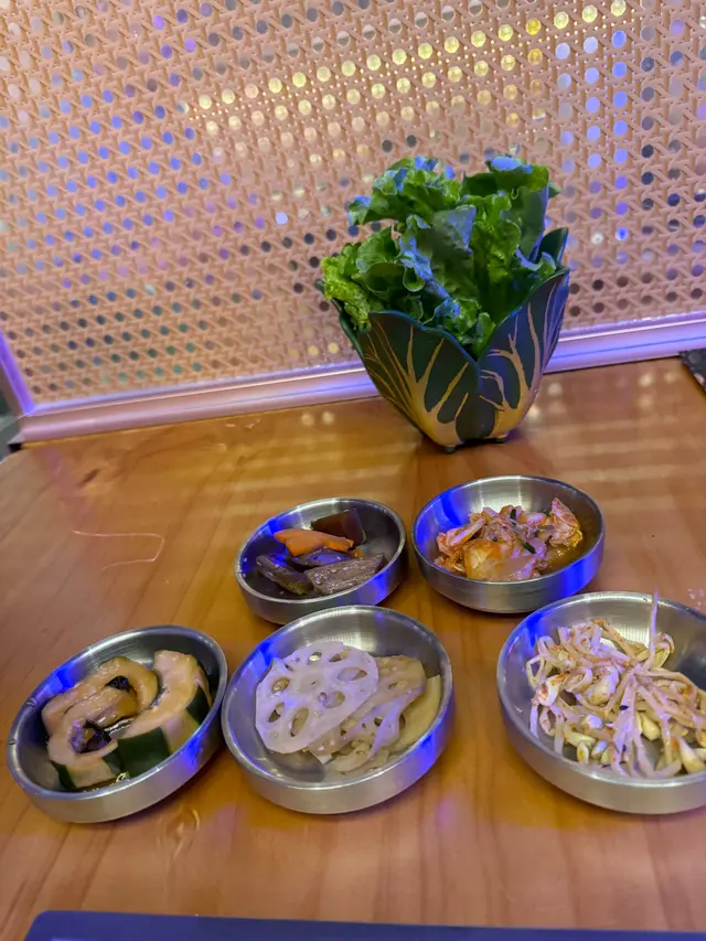 前菜有5款,樣樣都好食,尤其kimchi同蓮藕最好食👍食完仲可以免費添加!