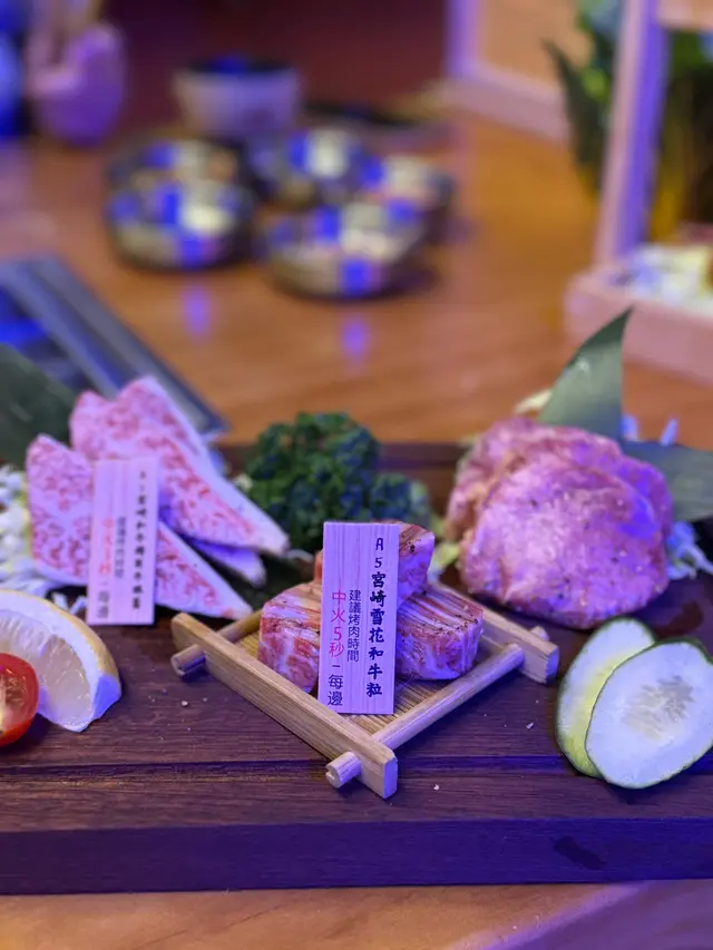 三拼分別有(A5宮崎雪花和牛粒)(A5宮崎和牛稀有牛眼蓋)(牛舌)