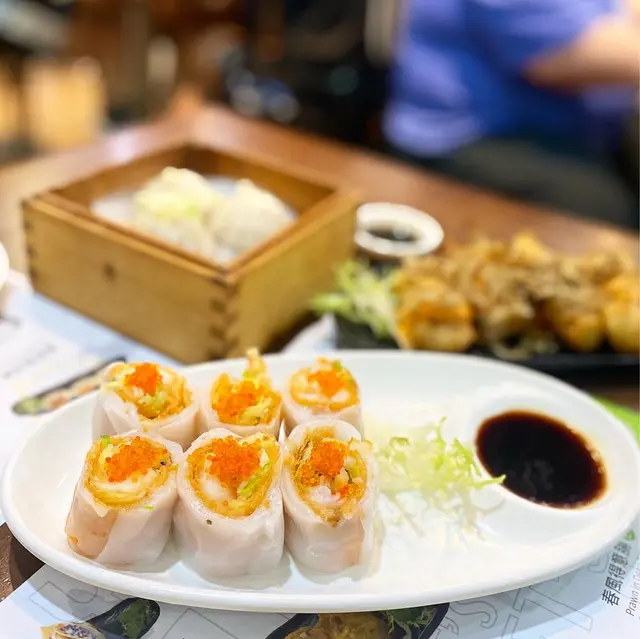 腸粉皮包住網狀春卷 春卷餡料有鮮蝦、椰菜、芫荽等