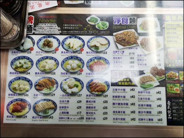 魚蛋麵,雲吞25,豬手29,魚皮餃25,魚片頭25,淨麵17,肉丸23