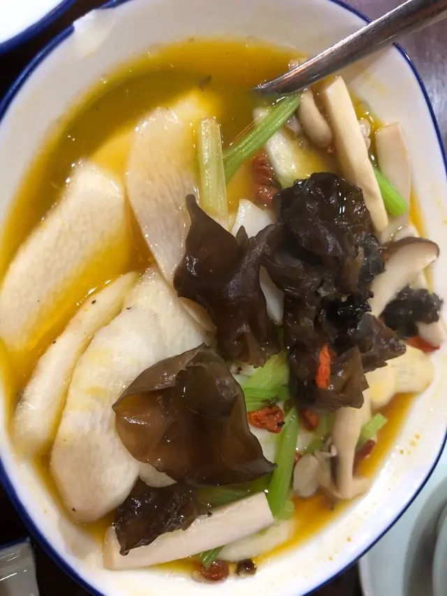 呢味杞子雲耳浸淮山可謂可口非常。廚師將鮮淮山切到薄薄地一片片咁, 淮山食落去既口感首先係脆,然後滑,最後先有粉既質感,層次豐富,加上爽口既雲耳同上湯餵煮,清淡得黎亦好入味