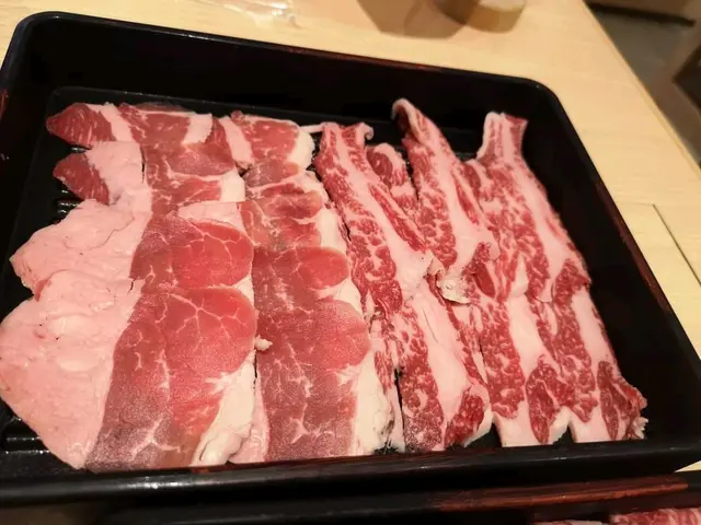 放題試下。來到鍋處,諗住食好少少,所以選擇了霜降盛合任食。其中可以任食霜降和牛/霜降小牛排。但當我叫霜降小牛排時,店員話唔可以單叫小牛排,要2款一起出 😯😯。 但事實上,霜降和牛實在不太好食,沒有牛味,質感好韌 😨,反而小牛排真的不錯 😋。。