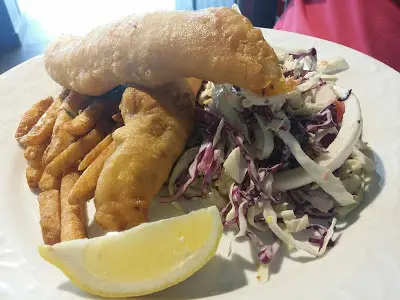 啤酒脆漿炸表衣魚柳. 薯條. 柑楙椰菜絲沙律