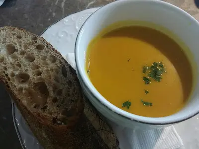 餐湯是我們不太喜歡的南瓜湯, 但味道還是不錯的, 有細粒粒的南瓜蓉, 又不會過於CREAMY