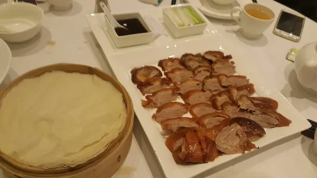 套餐提供的美食尚算豐富,其中有我至喜愛的片皮鴨,片皮鴨的肉質嫩滑,將其放在薄餅皮內,連同蔥段及醬油一併吃,口腔中巳感受到片皮鴨滲出的肉汁,加上蔥段有少少嗆鼻的刺激感,味道實難以形容。