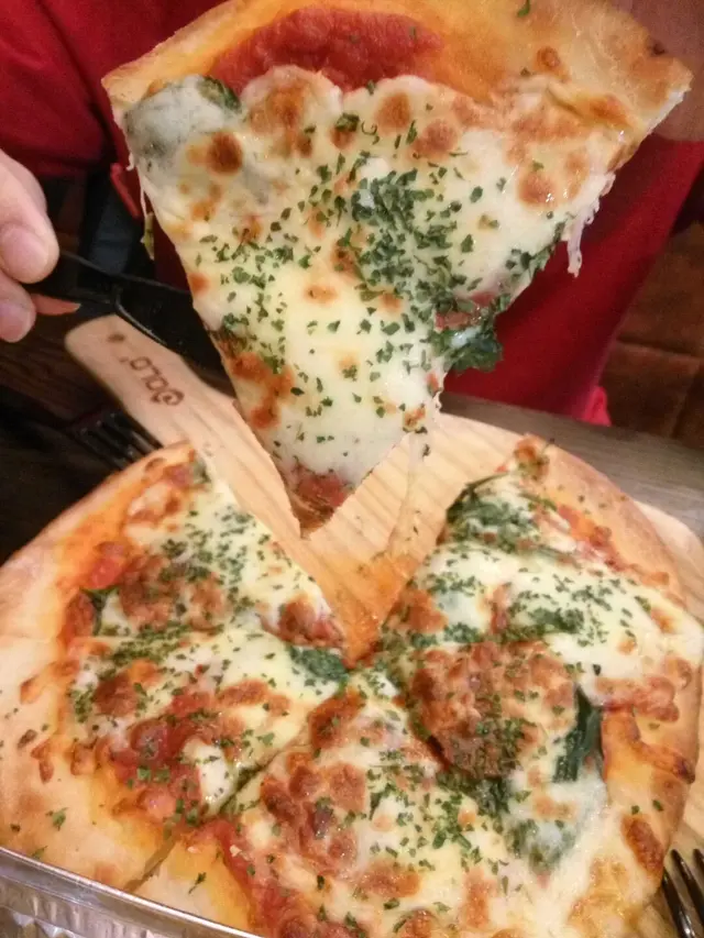(意大利經典薄餅) Pizza 真係意大利式,餅底唔薄唔厚,鬆軟微脆,意式茄醬鋪底,菠菜,辣肉腸同香草,再鋪滿溶化嘅芝士,幾惹味。