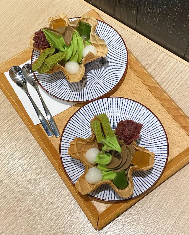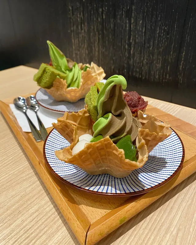 ▫️ 雪糕香濃好味,雖然焙茶味道較突出,但同抹茶雪糕好match☺️另外配上小丸子、紅豆蓉、抹茶小蛋糕、抹茶同焙茶兩款蒟蒻。每一款都好味,小丸子煙韌,蒟蒻茶味突出唔會太甜,再加上窩夫夠脆身,整體配合得好好,有日本嘅感覺🇯🇵性價比高,值得一試😋