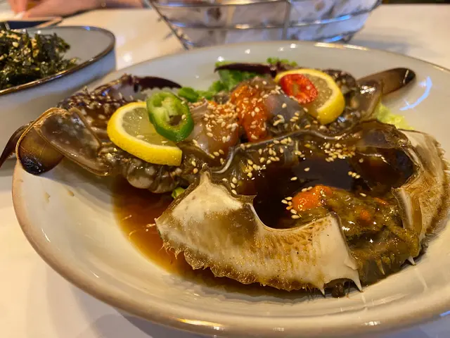 踏入餐廳,就有一名韓國店員很親切地招呼我們,他用英語向我們介紹招牌菜式,於是我們點了店員推介的醬油蟹和無骨炸雞。
