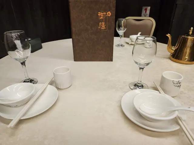 入座時四人套餐的菜單和餐具已備好。