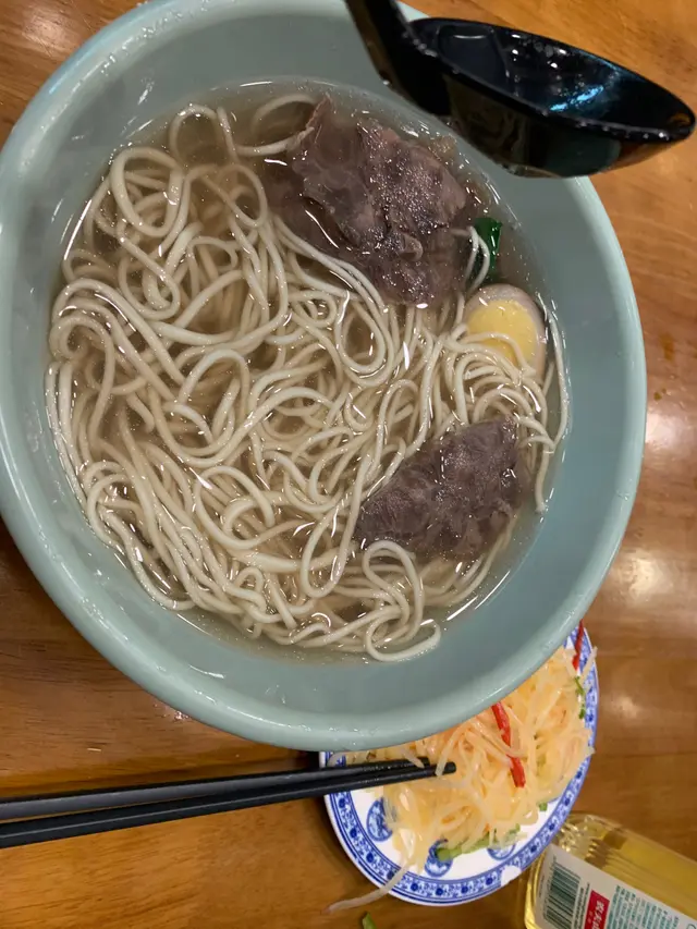 最近很想吃清湯蘭州牛肉麵,特意從家裡過來吃了一碗,印象中有10款麵可以選擇粗細,現今只有4款了,本是來吃毛細麵的,選了最幼的麵上來以後發現不夠細,但也還不錯啦,只是少少失望。先飲幾啖清湯之後一定要加醋➕辣椒,辣椒不辣只是香,特別適合牛肉麵,總之還算不錯,可以再來。