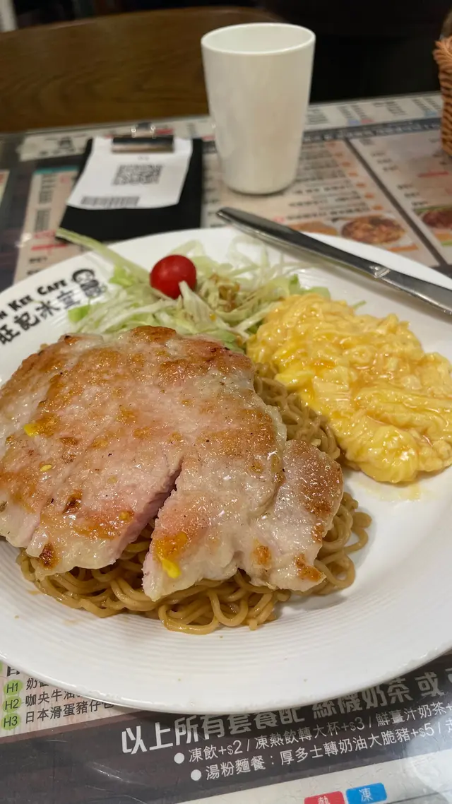 点了一个猪扒捞面,捞面有一点像七仔捞面的味道,但是口味会比七仔的重一点,应该也加了一些酱油之类,热气腾腾吃着很香。