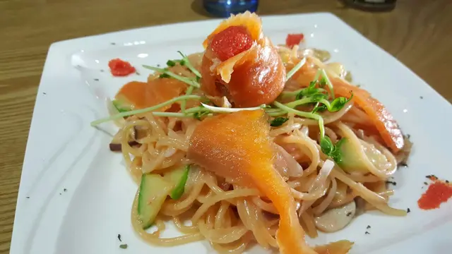 意粉類點左三文魚,魚幾夠多又新鮮,大大鍱,唔錯。