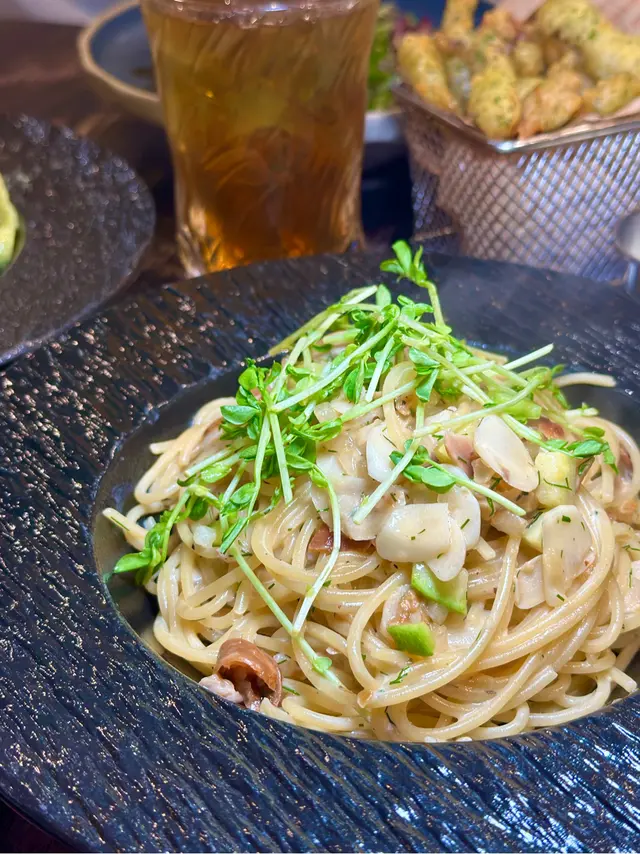 🫧刁草白酒蜆肉意粉🍝|田園沙律🥗|冷泡桂花烏龍茶🍹