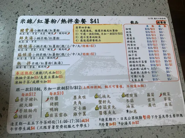 以米線來講,兩個餸$41都算正常價錢,飲品就可以跟餐送熱飲,凍飲同埋特飲加錢。
