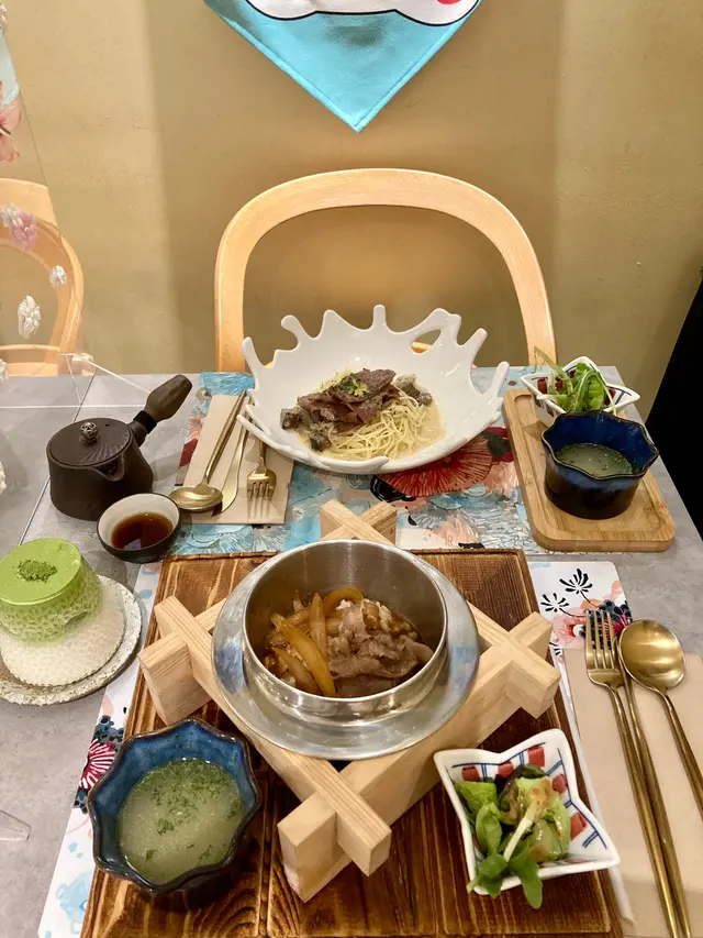 主食叫咗一份雪花牛日式燒汁丼($128)、香燒牛小排蘑菇汁意粉($128)。