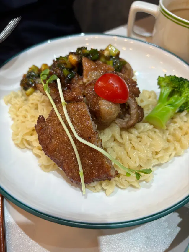 去鴨記買野,見下午茶時間尼間最多人就入去試試,首先環顧四周食客食緊乜嘢,見最多人食撈丁,其次就係朱扒包,就叫左個雞扒包配沙律同蔥油豬扒撈丁,店員服務真係好好,係香港真係買少見少,好老實,個撈丁真心麻麻但個雞扒包好有驚喜,大大件不在話下,沙律菜好新鮮,不過個包大到食得有點論論盡盡,見隔離枱叫左個金沙雞亦好似好好味,下次有機會試下,飲品就唔推介,杯咖啡飲得出係咖啡粉冲出嚟,檸檬茶就檸檬同茶味都好淡,普通普通,整體來講好好滿意👍🏻