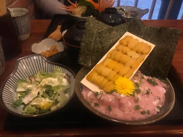 一個餐包一款前菜、沙律、湯同埋個飯。海膽配吞拿魚好正。海膽都新鮮,冇我最怕嘅腥味👍🏻👍🏻 整個餐評價都好,不過價錢偏貴少少。