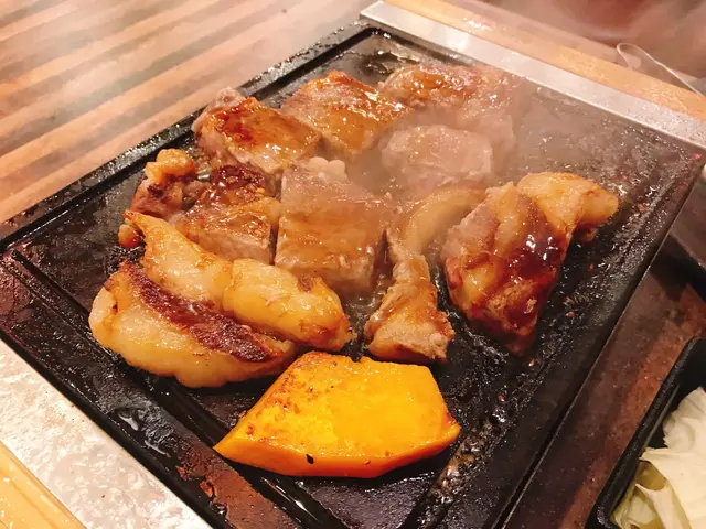✨石燒安格斯肉眼片250g: 呢塊牛都幾厚幾靚,牛味好濃ar,仲有滿滿既肉汁~加埋甜甜既燒汁更加正。😍不過塊石真係超級熱,燒到炸炸聲~塊牛最好燒到咁上下夾起先,唔夠熟先再放落去燒,如果唔係唔小心燒過龍就會韌左。