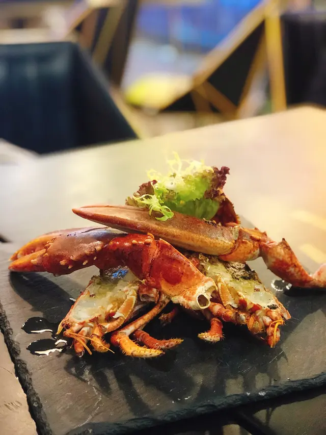 看到menu封面這麼多龍蝦就知道龍蝦是招牌菜式,我和老公點了一份原隻龍蝦、焗秘製豬仔骨、特色一口手卷(軟殼蟹)。飲品也相當特別,我要了一杯蝶豆花青檸梳打,老公則點了一杯忘了愛。