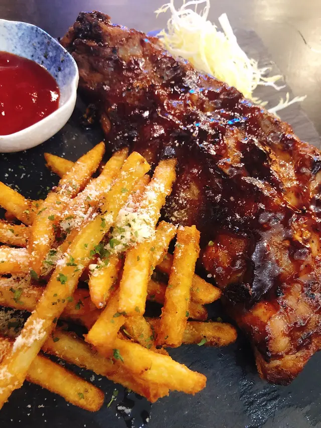 秘製醬汁很香濃,豬仔骨肉質鬆化而且入味。薯條很香脆,灑了些芝士粉味道更濃厚。