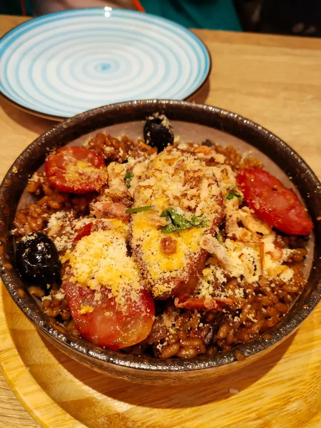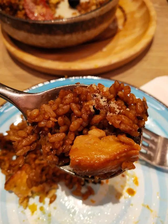 澳葡鴨肝芝士牛肝菌焗鴨飯:第一次嘗鴨肝,比想像中更好吃,口感軟軟的,帶輕微的羶味,配上葡國辣肉腸,鴨肉等,整個飯味道很有層次,濃郁又滋味。