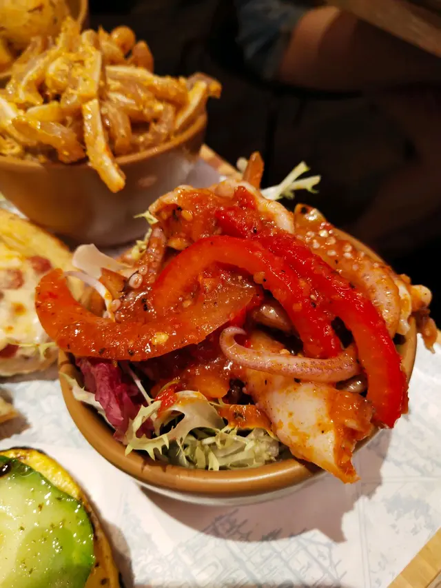 亞蘇爾招牌小食拼盆:二人份量,可以吃到多款不同小食。我偏好辣味,魷魚鬚沙律及香辣豬耳沙律就最合我心意,又夠惹味,最愛魷魚夠爽豬耳夠脆,真的加分不少;松露芝士脆包,真的不能錯過,微溫帶鬆化口感;還有烤意瓜,清甜不膩。