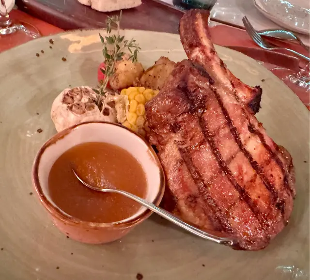 黑毛豬𩣑扒,好爽口,配埋個蘋果醬汁,簡直一流。