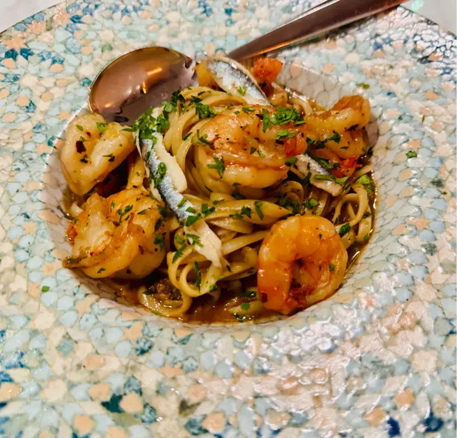鮮蝦意粉,啲蝦大隻又彈牙,有人明明話俾我聽,已經食到好飽,只係想食少少,都竟然成碟搶住同我食晒⋯有冇咁好味呀?