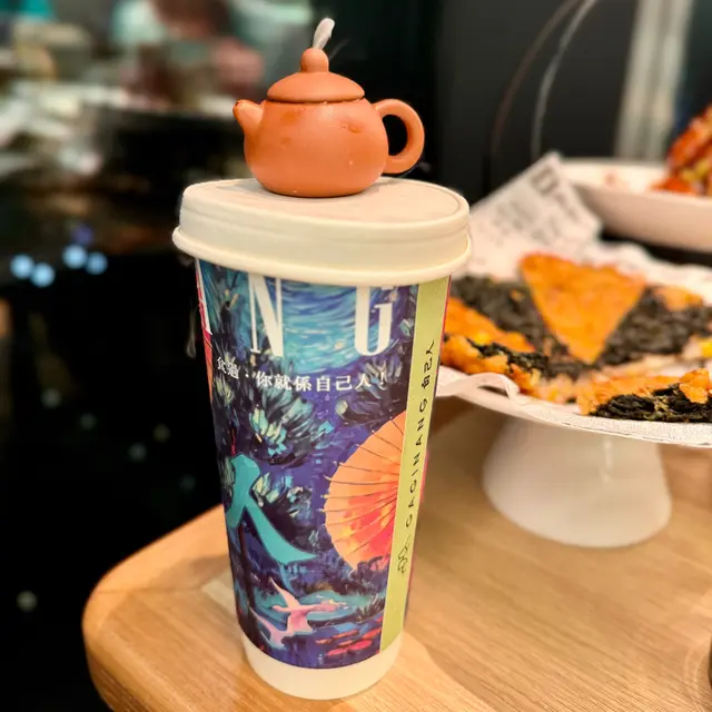外形好fancy,擺咗一個噴煙嘅茶壺喺上面,效果一流!綠茶茶底香醇,話梅酸酸甜甜,都幾解膩;