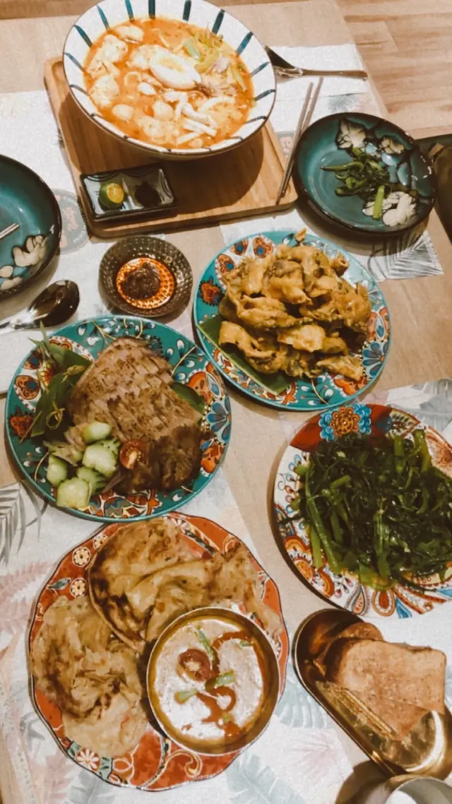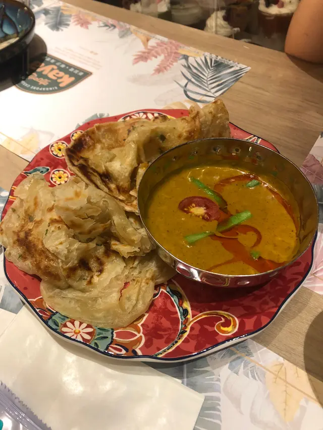 咖喱配手抓餅都幾好食,咖喱好有椰香,唔算好辣~主菜有嗌下燒豬頸肉、海南雞同埋喇沙米線~份量大份之餘調味岩岩好,最鐘意佢既豬頸肉要少少肥,入口軟得尼有少少油香,讚