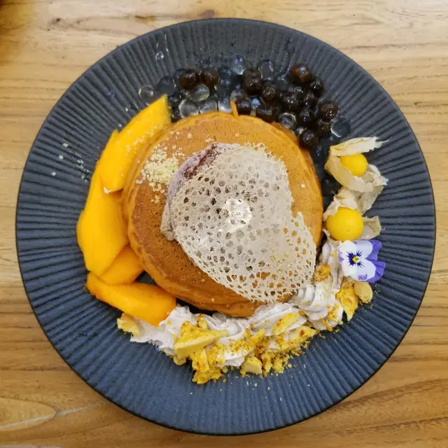 泰奶茶班戟,好好好食,首先上面球雪糕係咖啡味,但又同出面嘅咖啡味雪糕有小小唔同,總之係好食,個班戟有泰奶茶香,佢有個泰奶茶醬淋落去,唔太甜,味到剛好,就連伴碟啲cream都係有淡淡咖啡香,整體嚟講,好值得試。