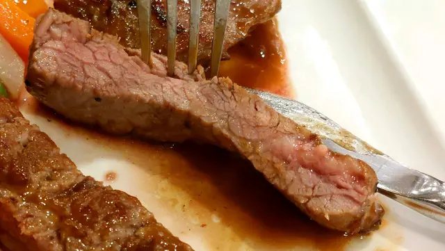 “慢煮美國側腹牛扒”,剛剛切下去有點困難,以為它很韌,但它是慢煮的,怎知原來是刀有問題,換了刀,其實挺嫩的,味道不錯,不過汁是跟黑豚扒的汁是一樣的,我們一桌才點了兩個主菜,為什麼它不問我們一下呢?擺盤也沒什麼講究,整個菜,最多算合格而已。