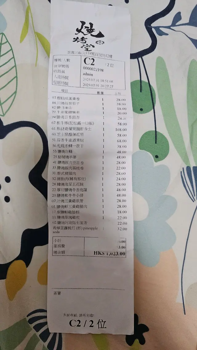 燒烤堂喺香港開咗3年多,最近仲喺荃灣開新分店。出名多款式,超過100款串燒,有齊豬、牛、雞、羊、鴨、海鮮、蔬菜,連甜品都有🍡!重點係日、泰、港、川等等多國口味通殺,keep住新鮮感,每嚟一次都搵到新驚喜。最鬼鍾意「焦糖青蘋果鵝肝多士」、「鹽燒原塊雞皮」、「汁燒三黃雞氣管」、「鹽燒鮮三黃雞腿肉」、「鹽燒阿波羅七里香」同「芝士黑醋無花果」,全部都係師傅自家製,手功十足,一咬爆汁勁滿足!🐷🐓🐟